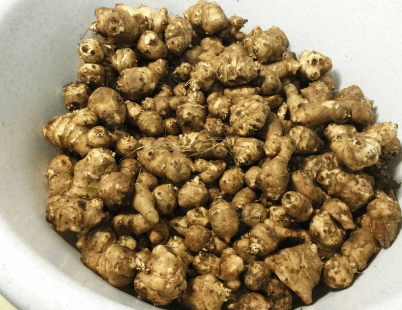 돼지감자는 뚱딴지라고도 불리는데요. 100g당 70kcal로 칼로리가 낮아서 다이어트 음식으로도 많이 이용되는데요. 돼지감자에는 이눌린, 탄수화물, 단백질, 비타민C, 칼륨, 철이 풍부하게 들어 있어서 혈당을 낮추며, 면역력과 피로해소에 좋은 식품으로 알려져 있습니다.