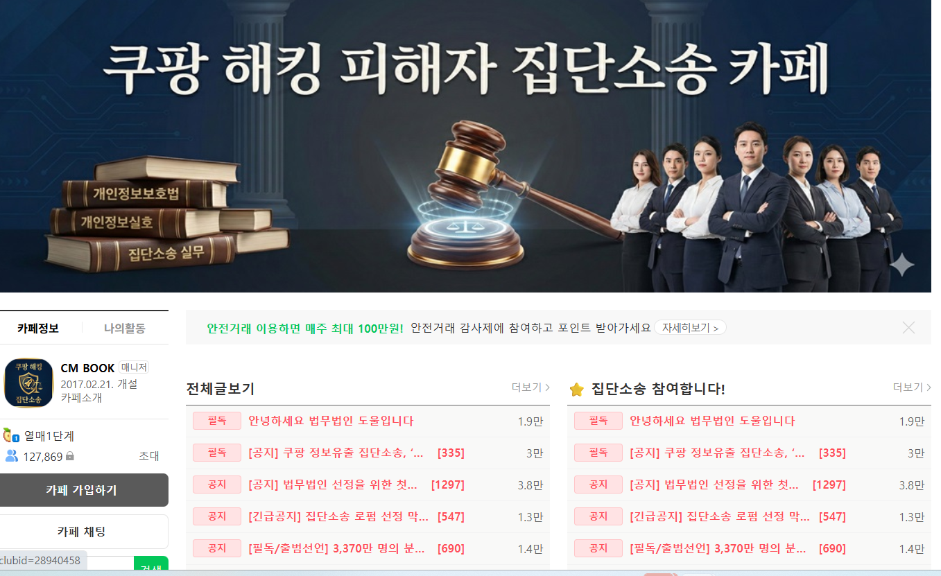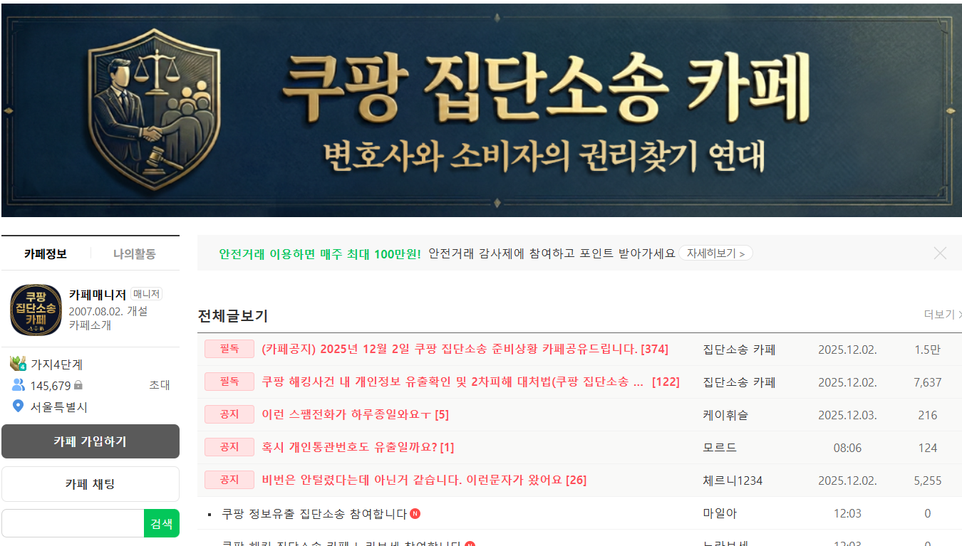 3. 쿠팡 해킹 피해자 집단소송 카페