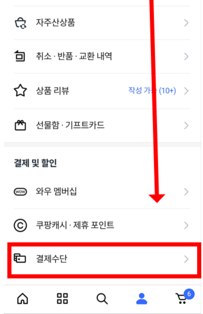 - 쿠팡 앱 실행 → 하단의 사람 아이콘(마이쿠팡) 선택